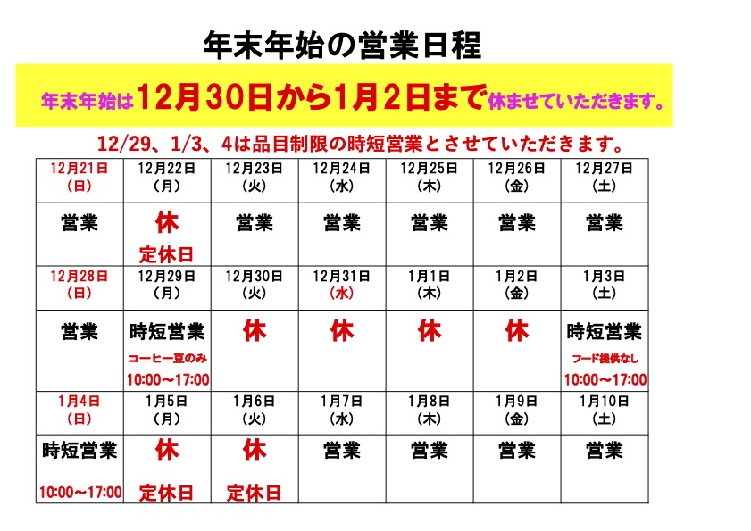 2025-2026年末年始の営業日